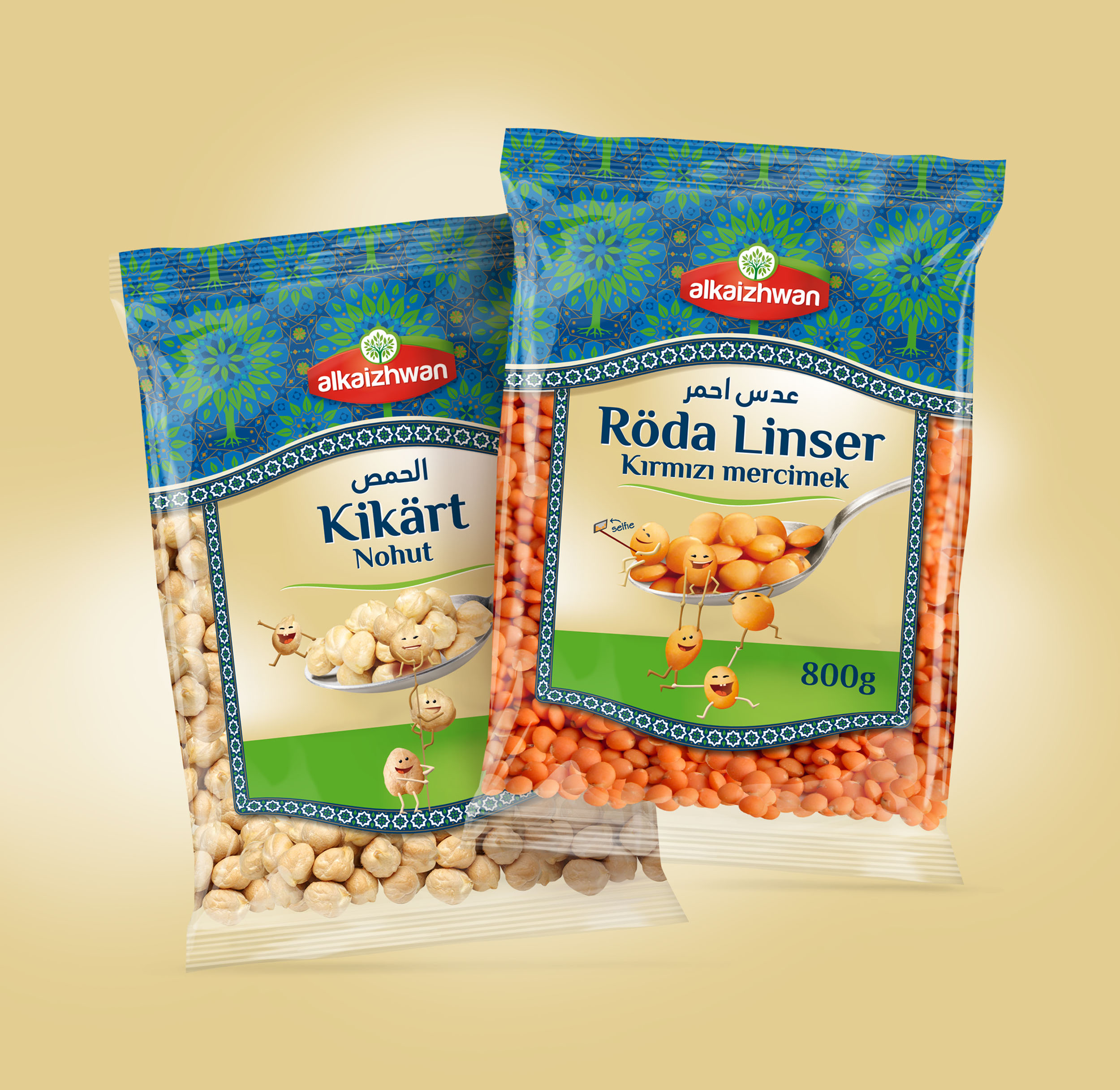 Projekty opakowań Akaizhwan. Jest to marka obejmującą szeroki zakres asortymentu spożywczego przeznaczonego na szwedzki rynek. Większość produktów ma pochodzenie śródziemnomorskie, azjatyckie, arabskie (bogata gama ryżów, daktyli, humus), ale marka oferuje także produkty typowe dla odbiorcy europejskiego. Projekt obejmował rebranding marki – opracowanie logo marki oraz stworzenie nowej architektury wizualnej opakowań, a następnie kompleksowe opracowanie graficzne opakowań w nowej szacie – wraz wykonaniem sesji zdjęciowych dań i wizualizacji smakowych. Zajęliśmy się również kreacją materiałów promocyjnych (reklamy, POS). Projekt jest otwarty i do portfolio marki wciąż dodawane są nowe produkty.