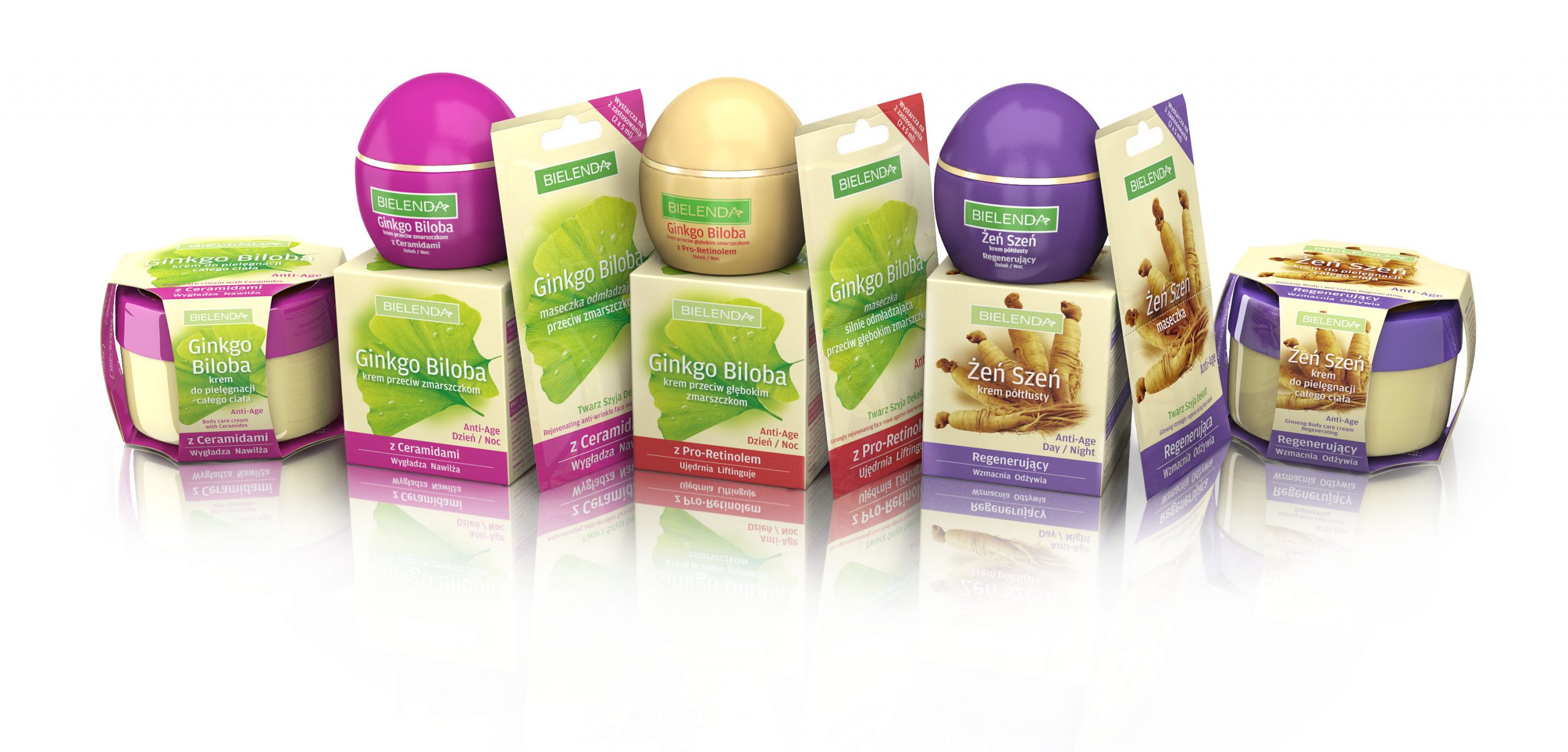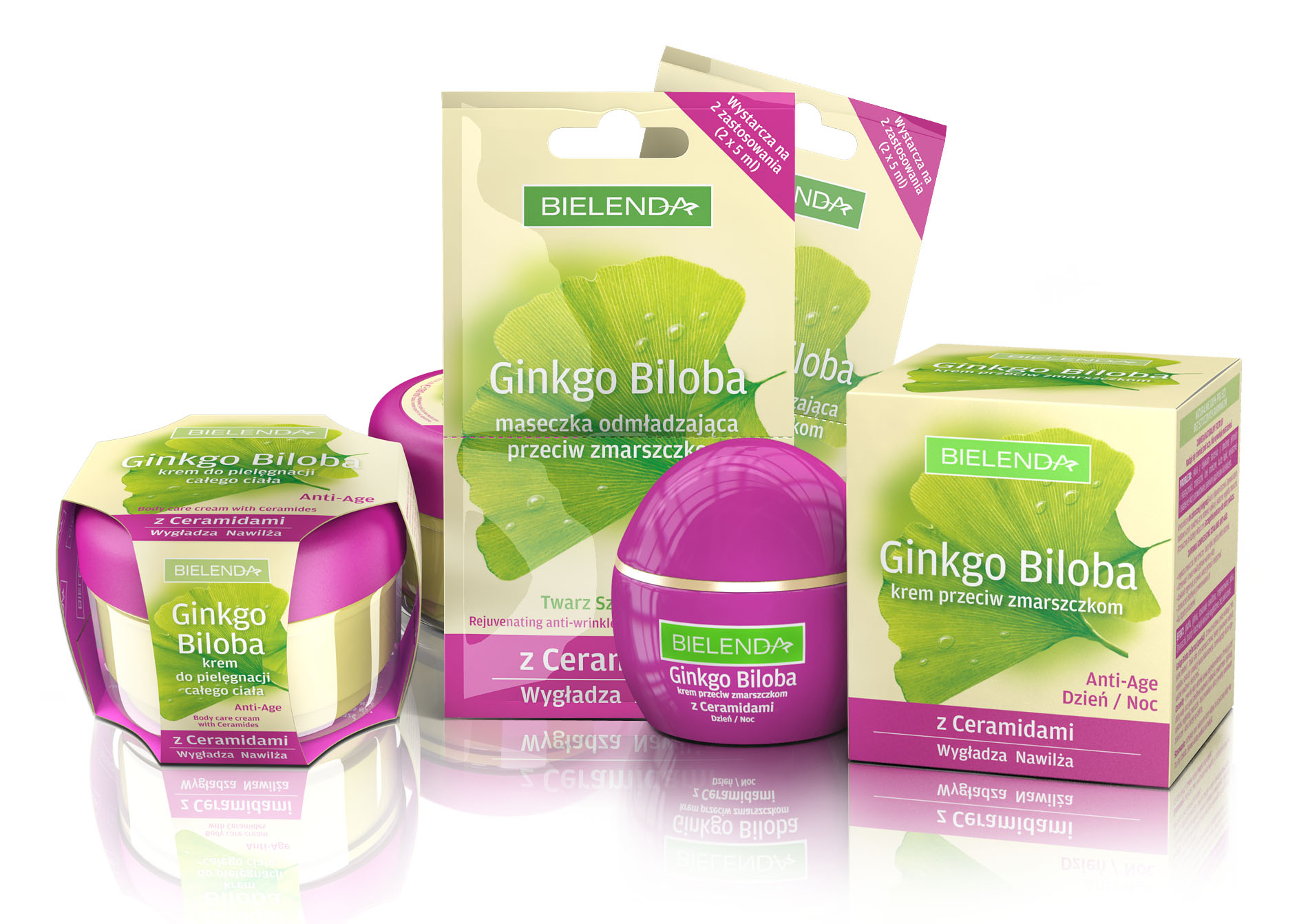 Projekty opakowań GINKGO BILOBA (Bielenda). Jest to linia roślinnych kosmetyków do pielęgnacji twarzy i ciała o kompleksowym działaniu. Produkt ma swoich wiernych klientów już od wielu lat, jednak podążanie z duchem czasu wymagało nadania linii bardziej nowoczesnego charakteru. Dlatego celem realizacji było zaprojektowanie nowych projekty opakowań GINKGO BILOBA przy jednoczesnym nawiązaniu do ich dotychczasowego wyglądu. Linia została również poszerzona o produkty oparte na żeń-szeniu. Dodatkowo zostały przygotowane reklamy prasowe i ulotki wspomagające promocję linii.